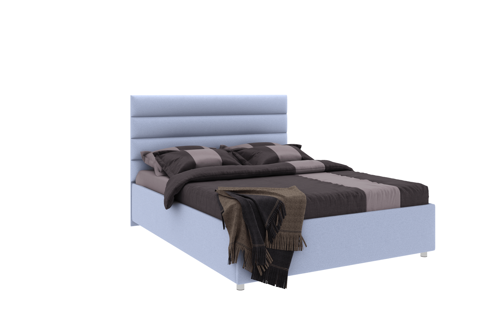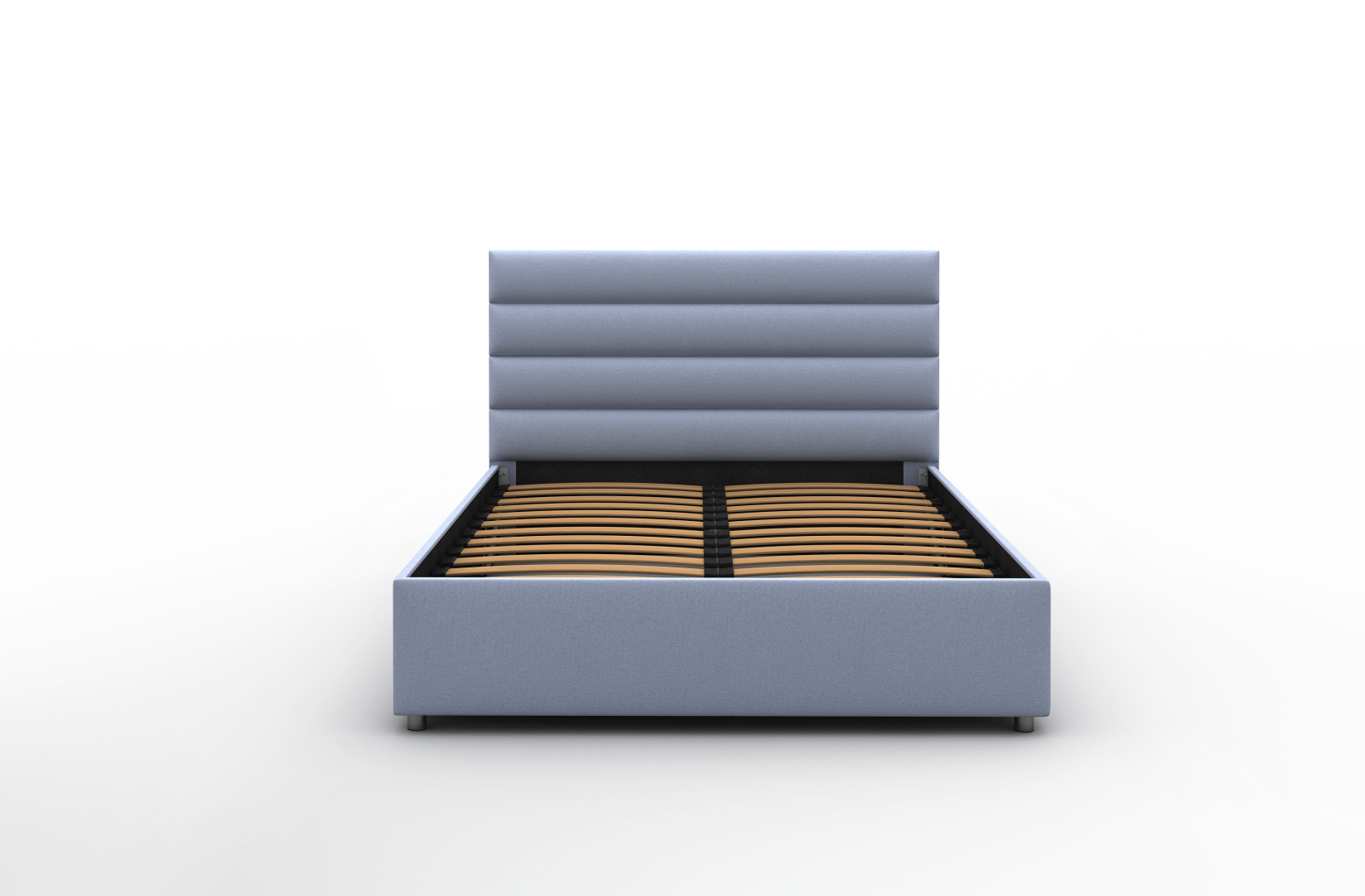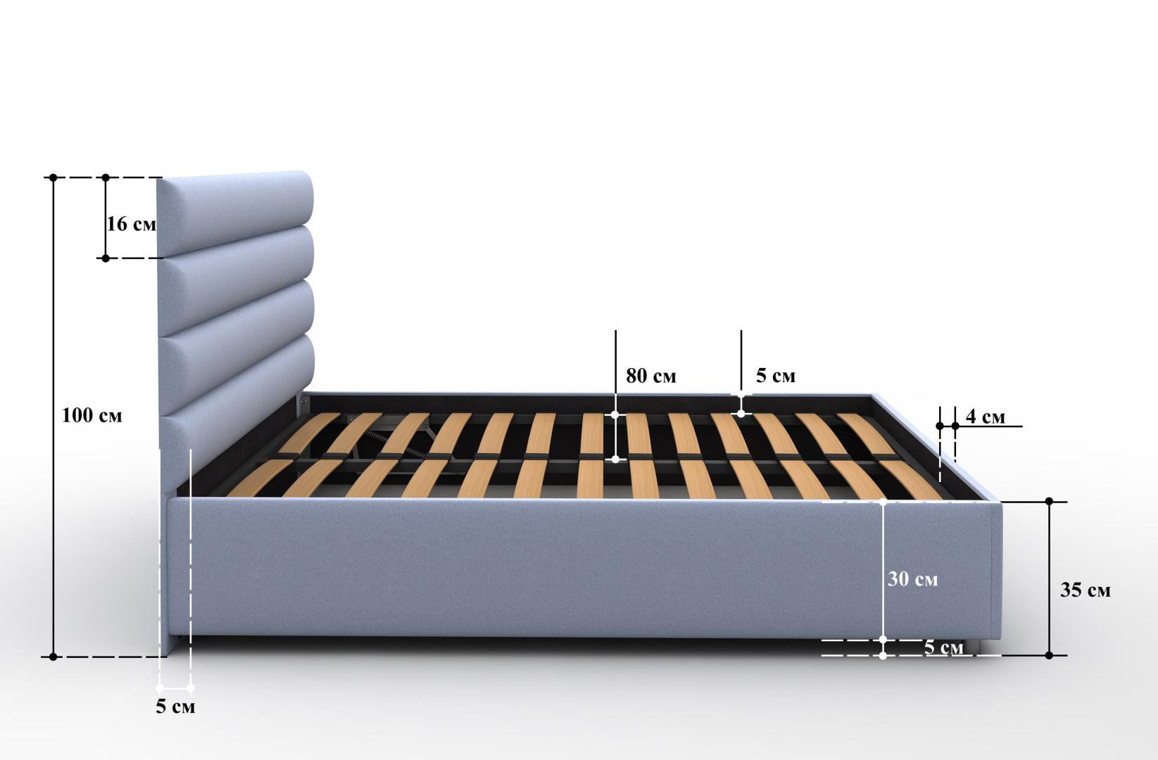 В комплект к кровати поставляется металлическое основание с гибкими деревянными ламелями. Конструкция обеспечивает более плавную и аккуратную поддержку матраса в сравнении с обычным плоским остовом.