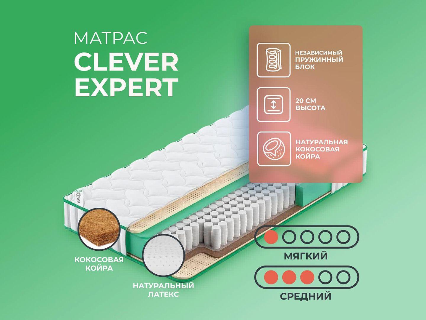 Фабрика Clever получила заслуженную репутацию, благодаря применению новых технологий и безупречному соблюдению стандартов качества. Clever Expert — образец продукта с лучшими характеристиками и доступной ценой, матрас создан из дышащих тканей, с эффектом вентиляции.